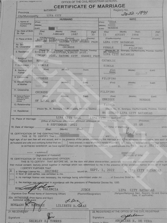 中国去菲律宾结婚证(菲律宾结婚证普及)